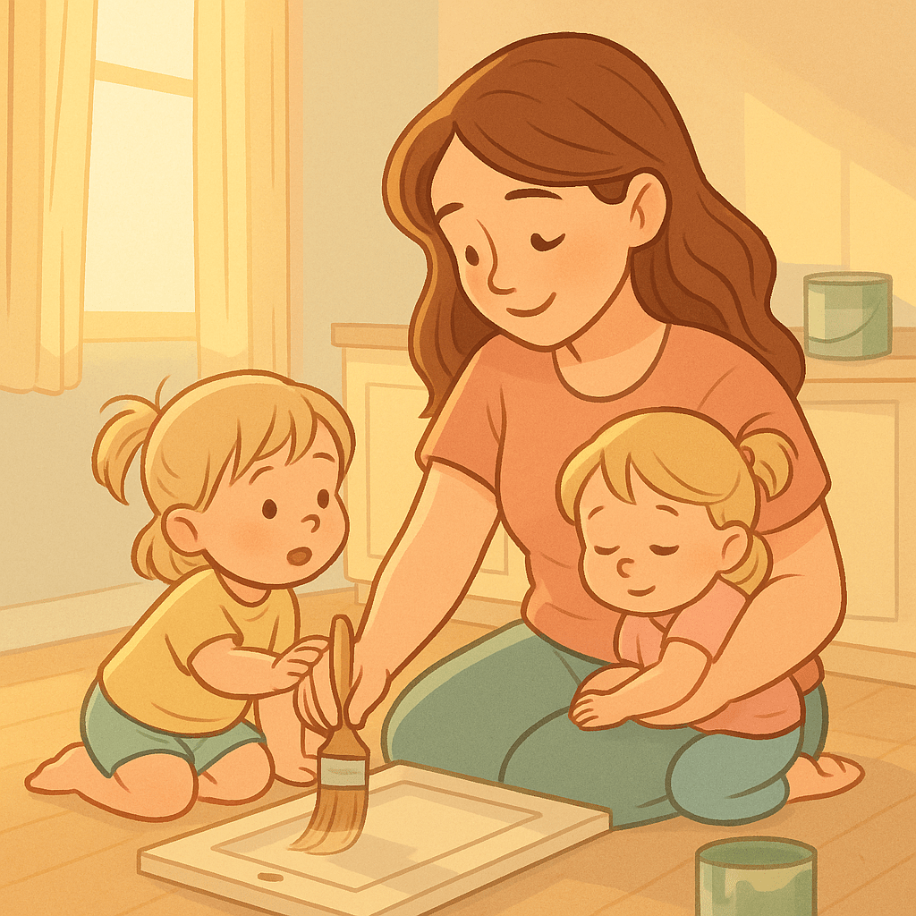 Meanwhile, Aubree kept trying to take my paint brush — she’s determined to be a tiny contractor.